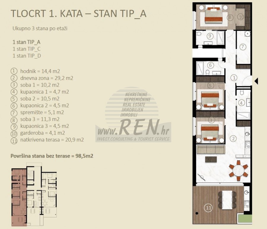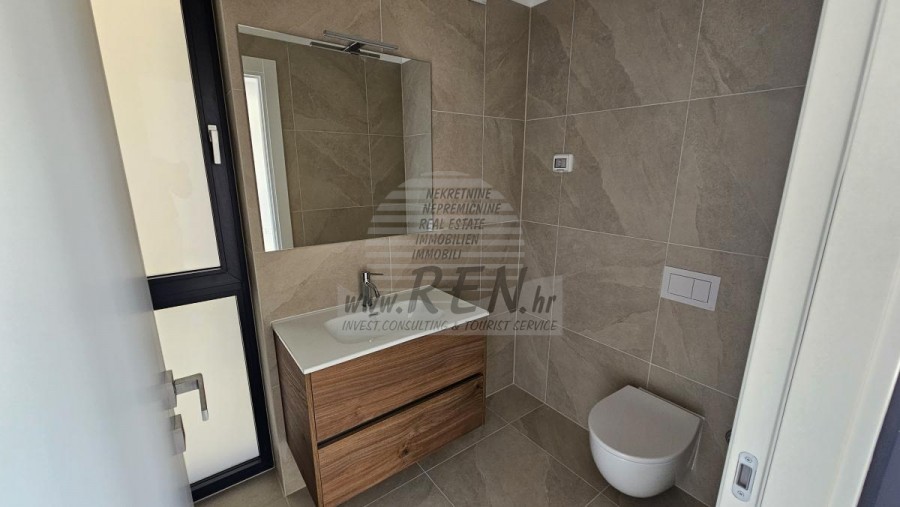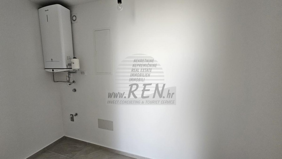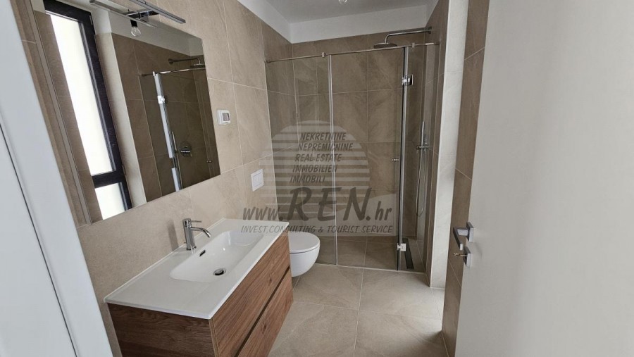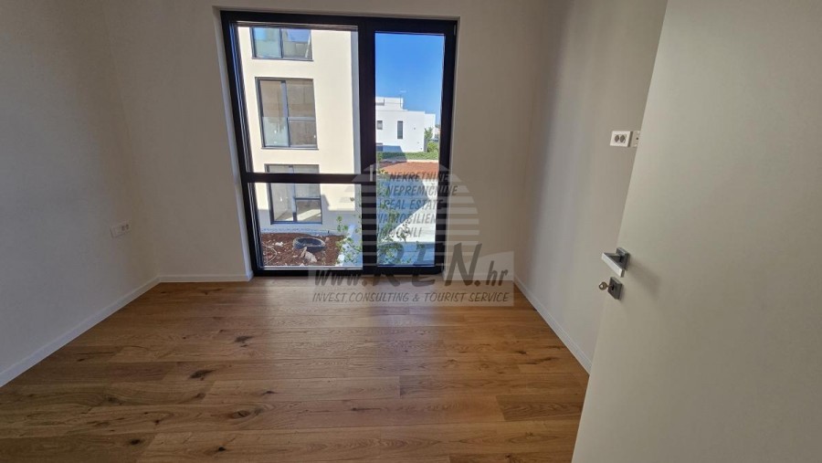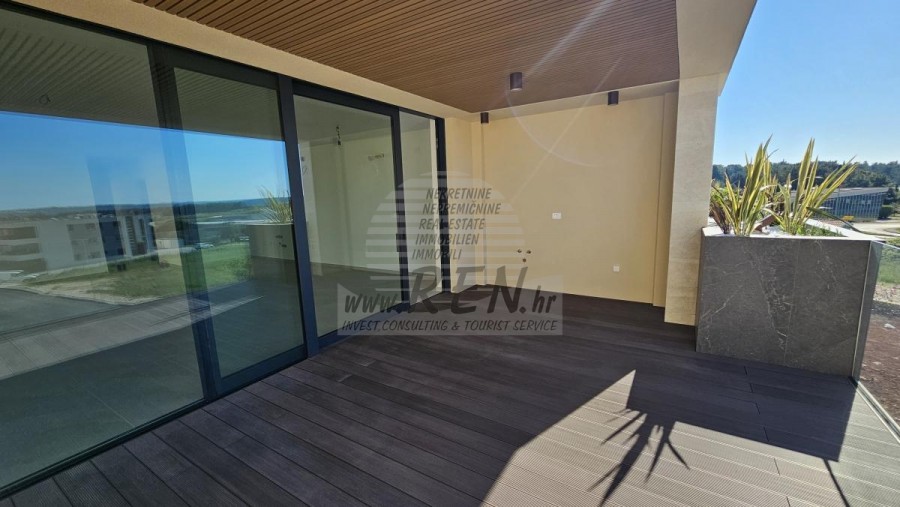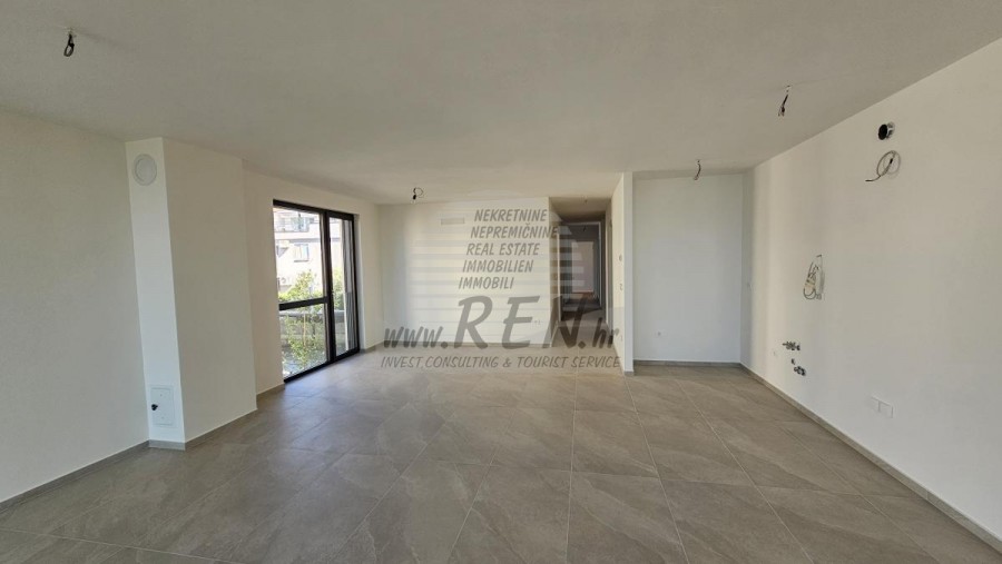 Appartamento 3B a Cittanova ha un totale di 98,5 m2 senza terrazza, si trova al primo piano, fase di costruzione, 5 min. (1000m) dal mare e dalla bellissima spiaggia, a 5 min. (1000 m) dal centro di Cittanova. L'appartamento è composto da cucina/soggiorno/sala da pranzo, 3 camere da letto, 3 bagni, ripostiglo, guardaroba, terrazzo 20,9 m2. Specifiche dell'appartamento: