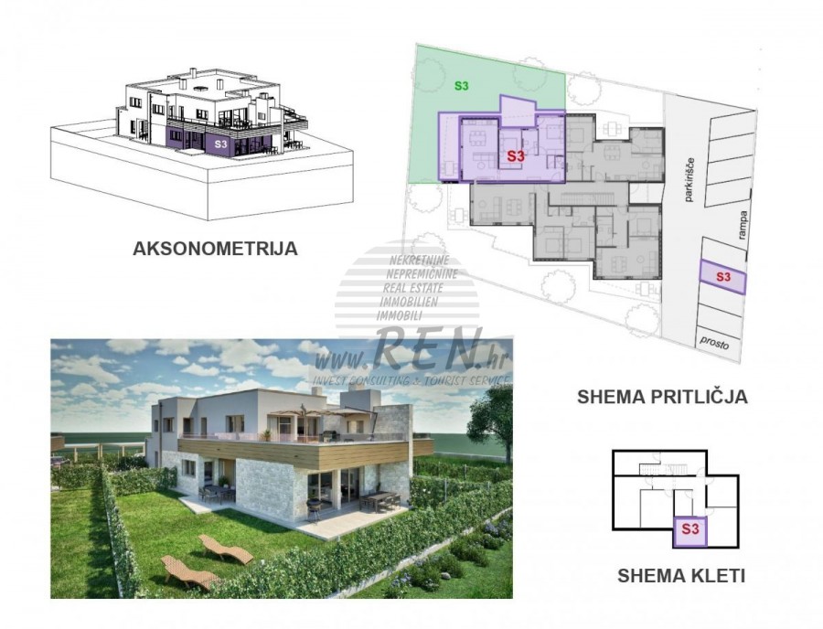 - Appartamenti S1–S4 (piano terra):